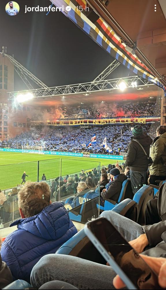 Il centrocampista della Sampdoria Jordan Ferri ha assistito alla partita dei suoi compagni con l'Entella dalla tribuna.